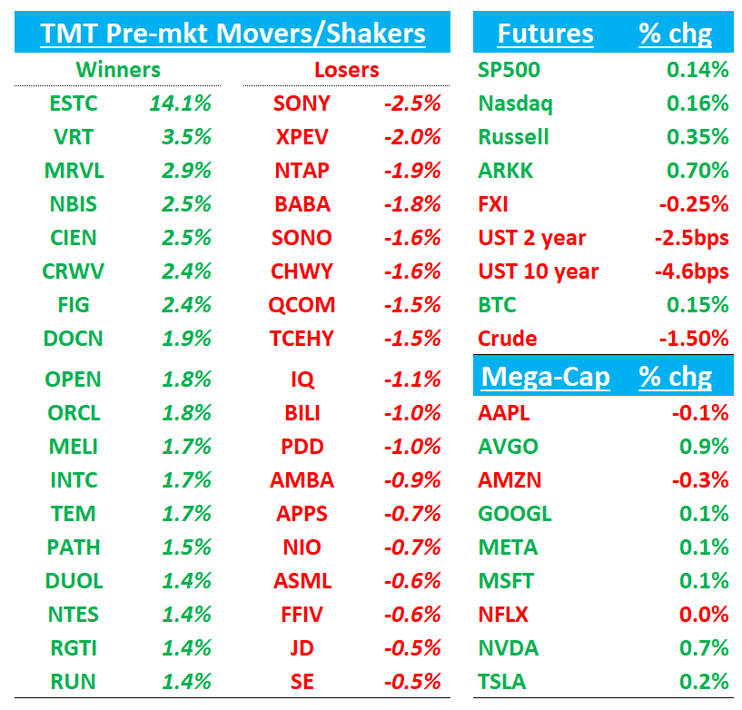 Good morning. Futures +15bps on a relatively slow Friday (so far!). BTC 40bps. Asia saw mixed price action on Friday: TPX -1.85%, NKY -1.01%, Hang Seng -1.73%, HSCEI -1.8%, SHCOMP -0.94%, Shenzhen -1.74%, Korea KOSPI +1.73%. Samsung +6% / Hynix +6% as SK reopened. Yields down 2-5 bps across the curve.