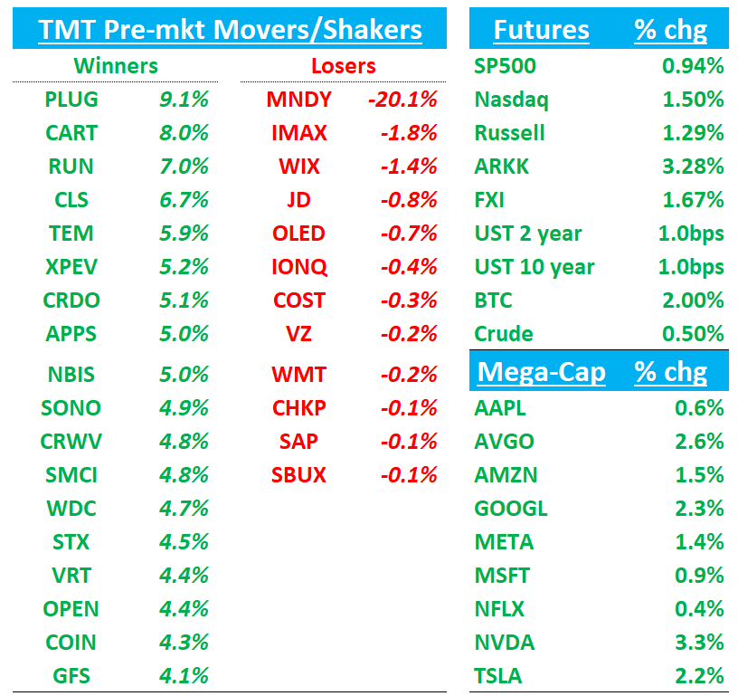 AI Names bid to start the day: CLS +6%; MU/STX/WDC/SNDK +4-5%, NVDA/AMD +3%