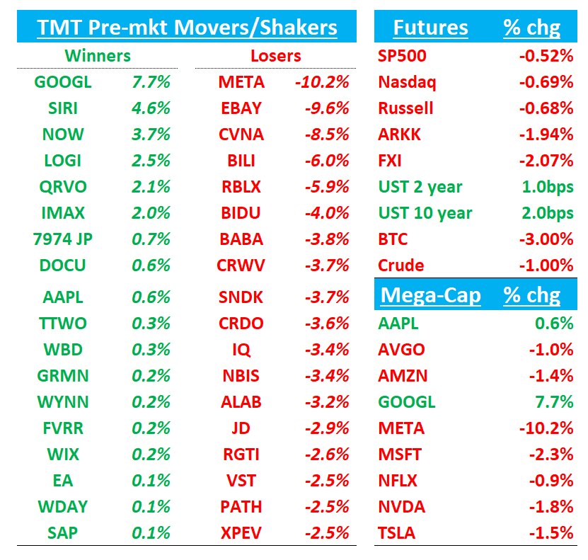 Futures lower by 65bps to start the day as we’re seeing a bit of sell the news after the Trump/Xi meeting, which seemed to go well (Trump: 12 out of 10) but no mention of NVDA Blackwell chips.