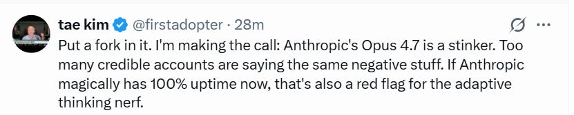 Anthropic/AI: Opus 4.7 Vibes not good so far