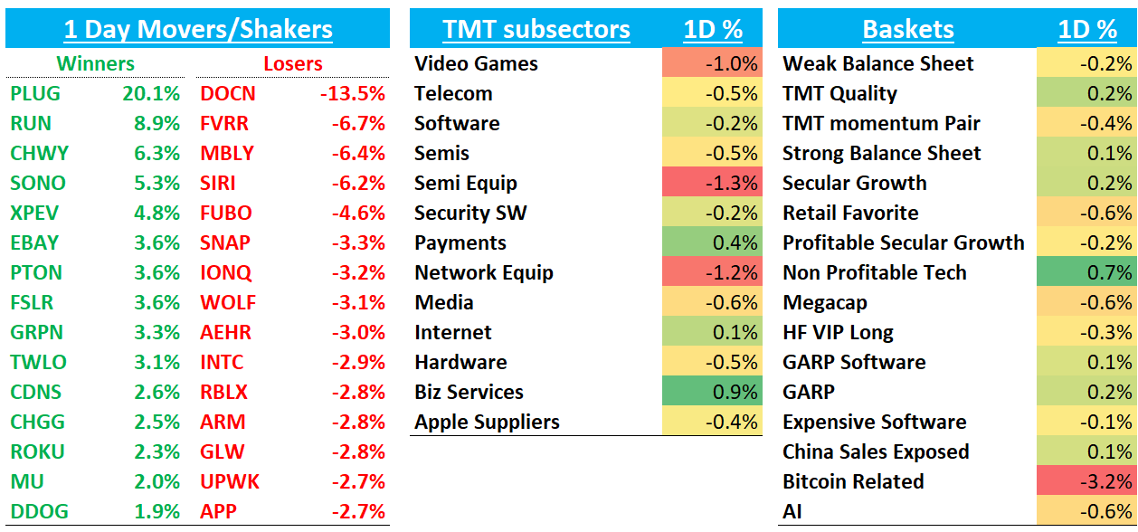 QQQs -22bps ahead of the election tomorrow as yields fell 5-10bps across the curve. Election odds close to 50/50 now as Harris gained ground over the weekend and reports some polls over-indexing towards Trump after under-indexing in ‘16 and ‘20.. BTC - 2% selling off as Trump seen as more positive for crypto. Oil +3% on heightened geopolitical tensions.