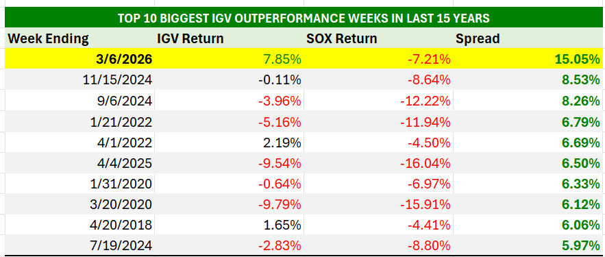 Happy Sunday. Quite a long week as Iran war developments and Oil biggest weekly spike ever, coupled with a weaker unemployment report to end the week dominated the macro landscape. However, Tech didn’t disappoint with its own high level cross-currents during what always seems to be an amped-up MS TMT Conference week:
