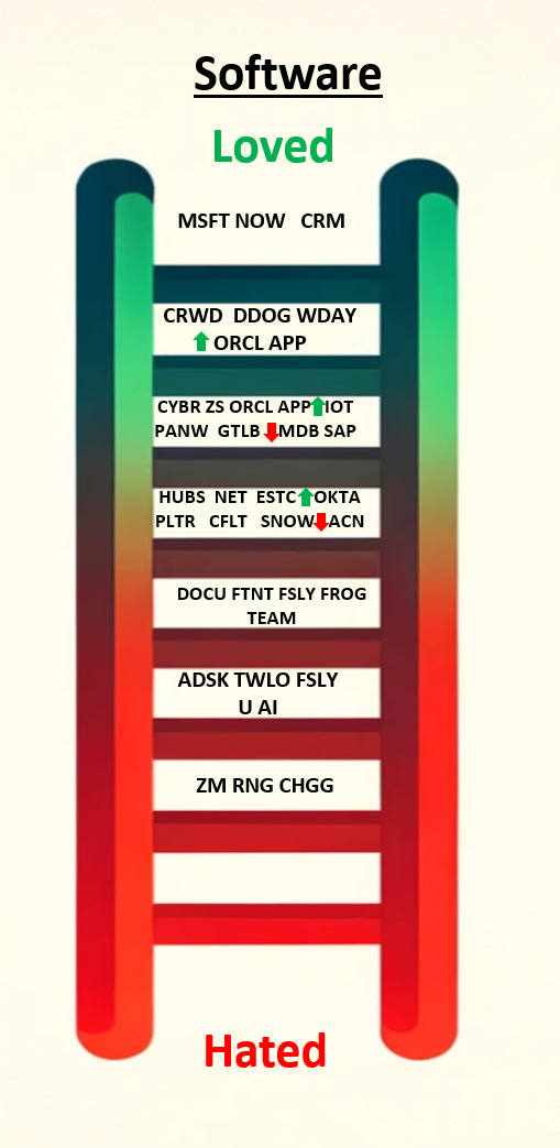 Software sentiment remains mixed at best. We have been writing about the potential for AI-related spend to cause other areas of spend to slow down and the evidence seems to be pointing to an environment where that is happening. Over the last several weeks we’ve seen misses from a slew of companies: PANW, GTLB, ESTC, SNOW, FSLY, ZS, AKAM, and WDAY. Despite OCI strength, even ORCL guided for a squishy Q4 in the rest of their biz. To add fuel to the f…