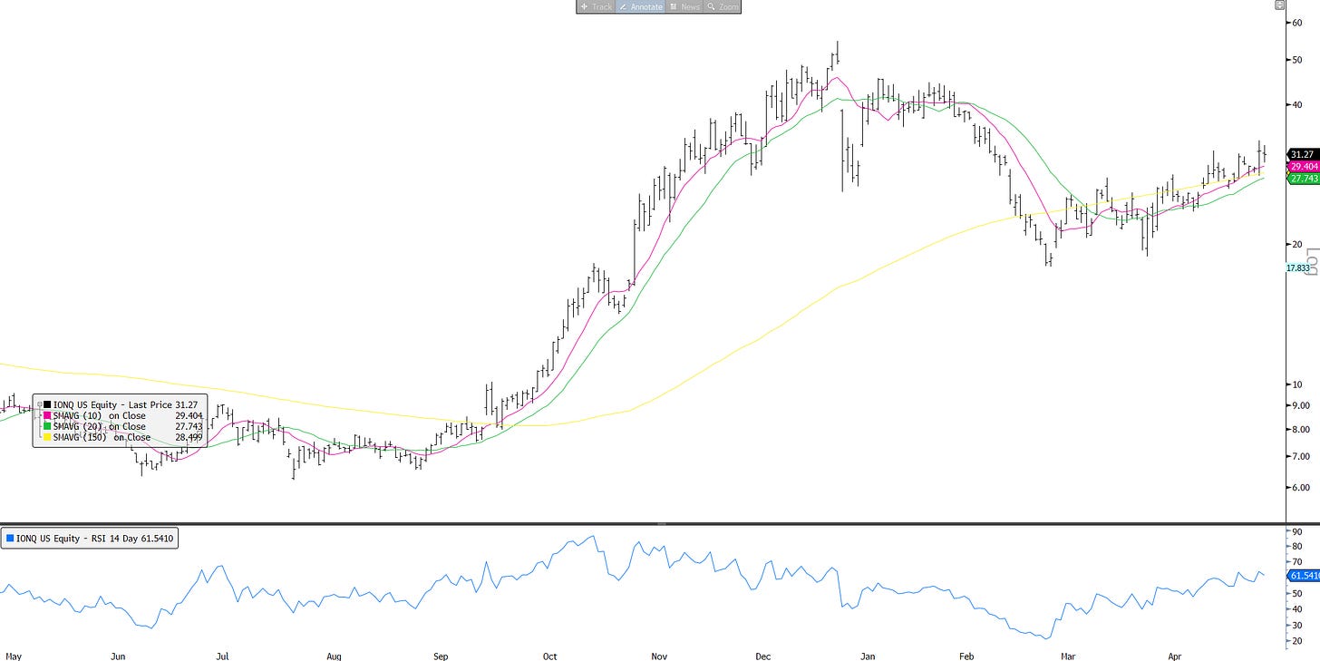 Quantum acting better - watch this space as a couple sell-side calls around Quantum this week. Here’s IONQ: