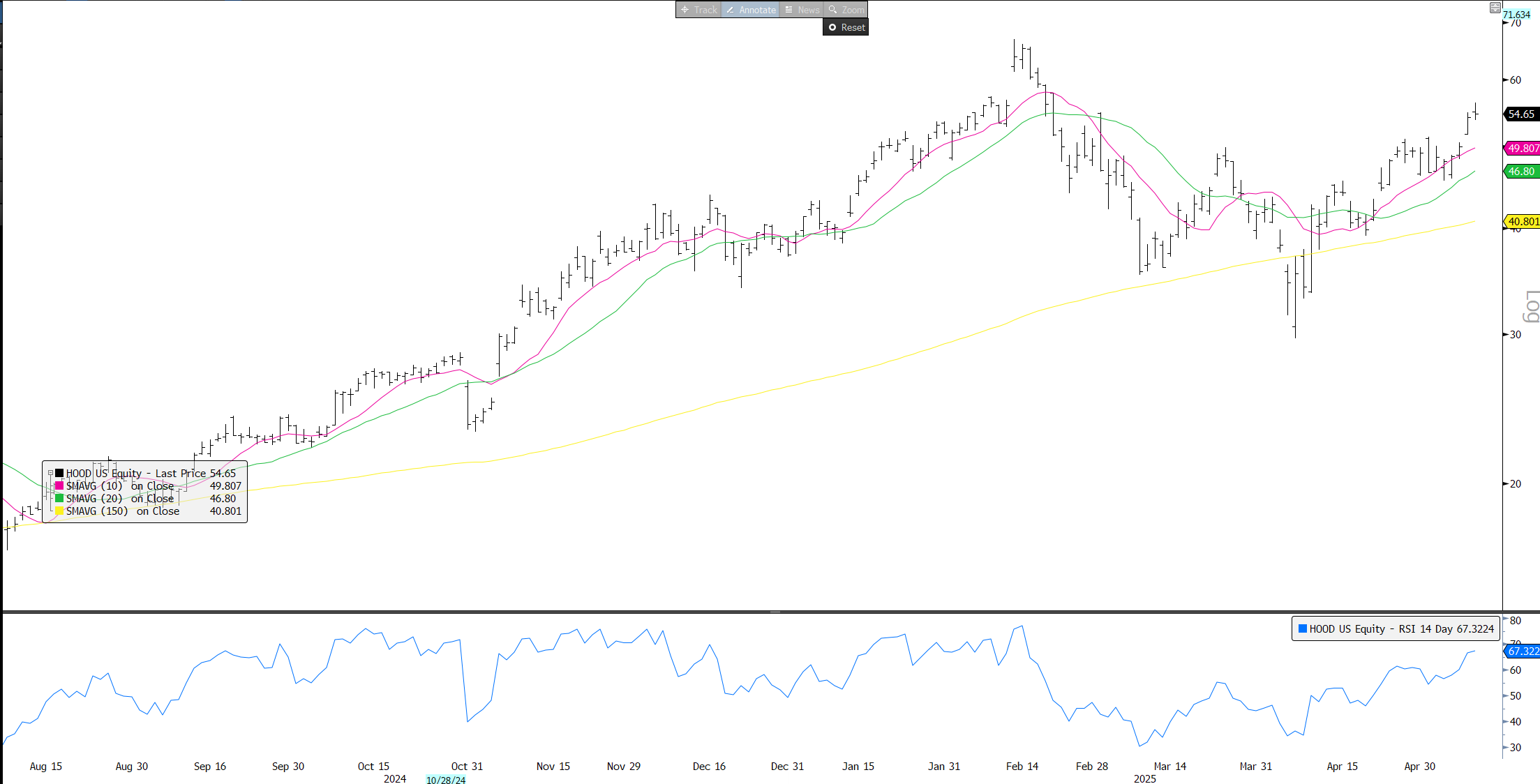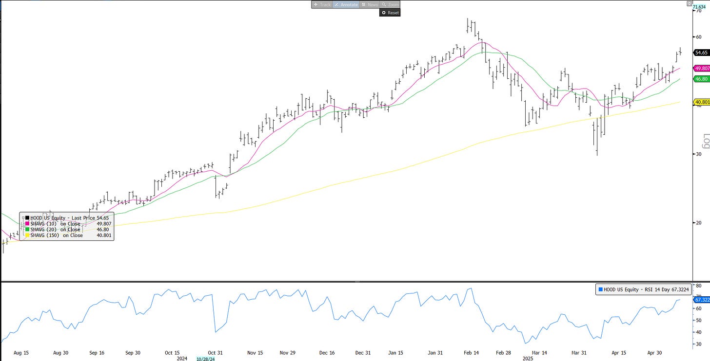 HOOD: Retail trading darling - chart looking strong…announced they will allow Europeans to get in on U.S. stock action through blockchain = more retail…Good story/narrative here…