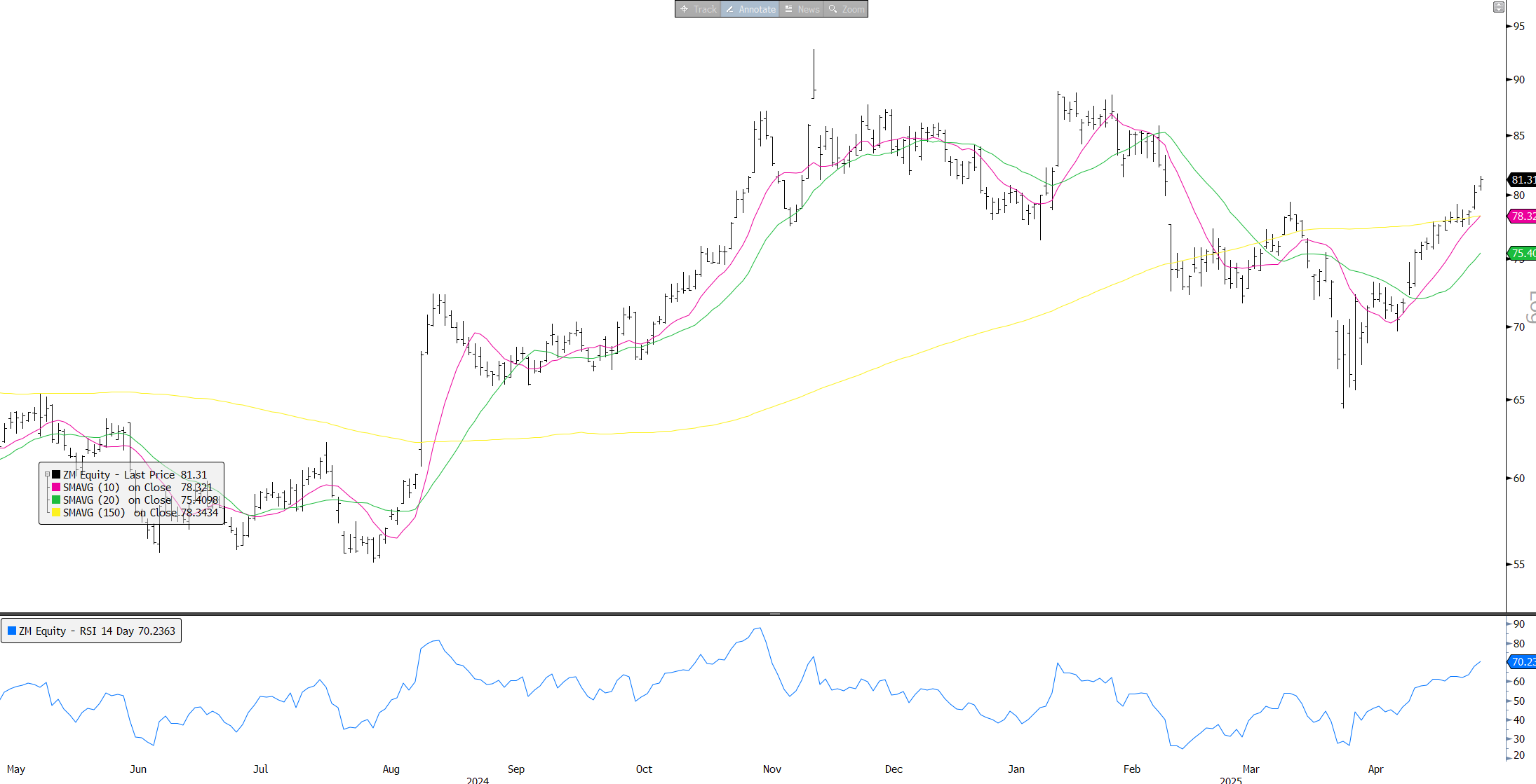 In other words - the charts support choppy but upwards trending…