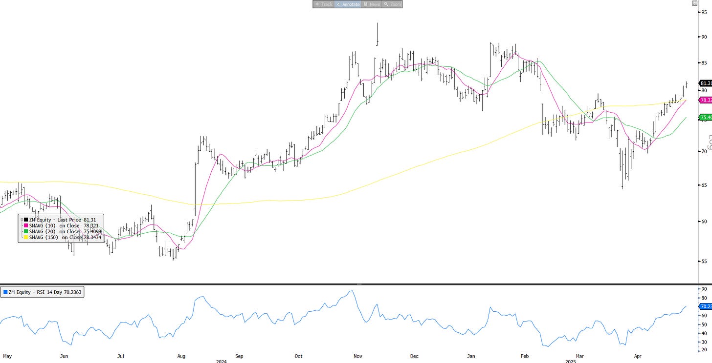 Enterprise software (tariff/China safe haven) showing plenty of strength…Lagged some of the names in the first group off the bottom so still room for catch up: