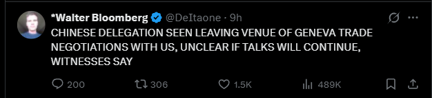 On the macro front, let’s recap the bull vs. bear debate. Skittishness has died down but investors are still nervous as evidence by the freakout over the Chinese and U.S. delegations stepping away for lunch in Switzerland earlier today: