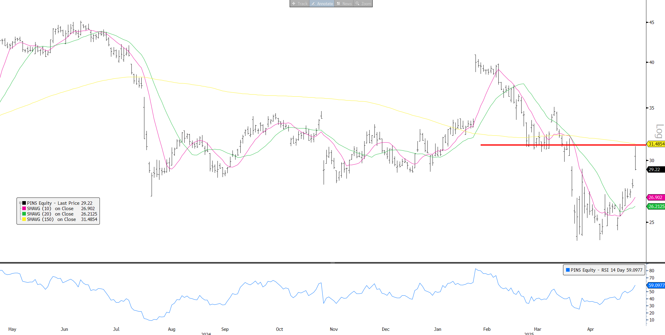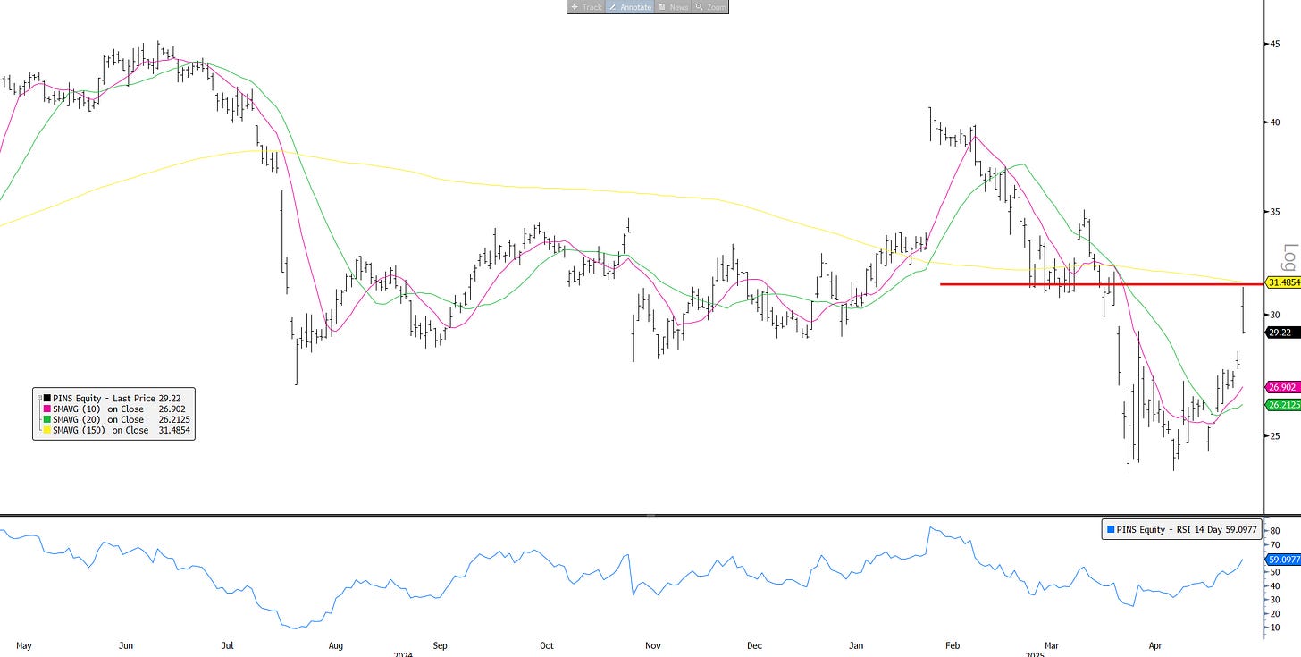 PINS: Rejection at Liberation Day Gap...We liked the print but ad cyclicality + CPG exposure still worries