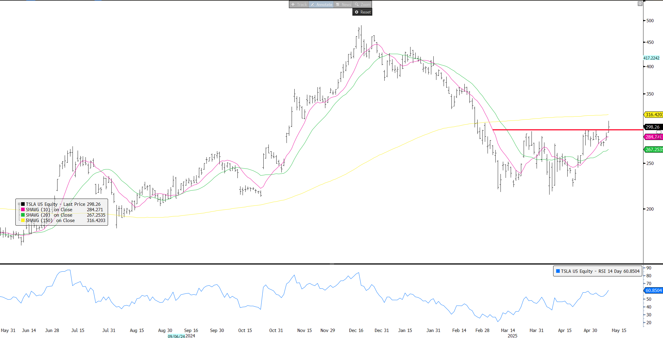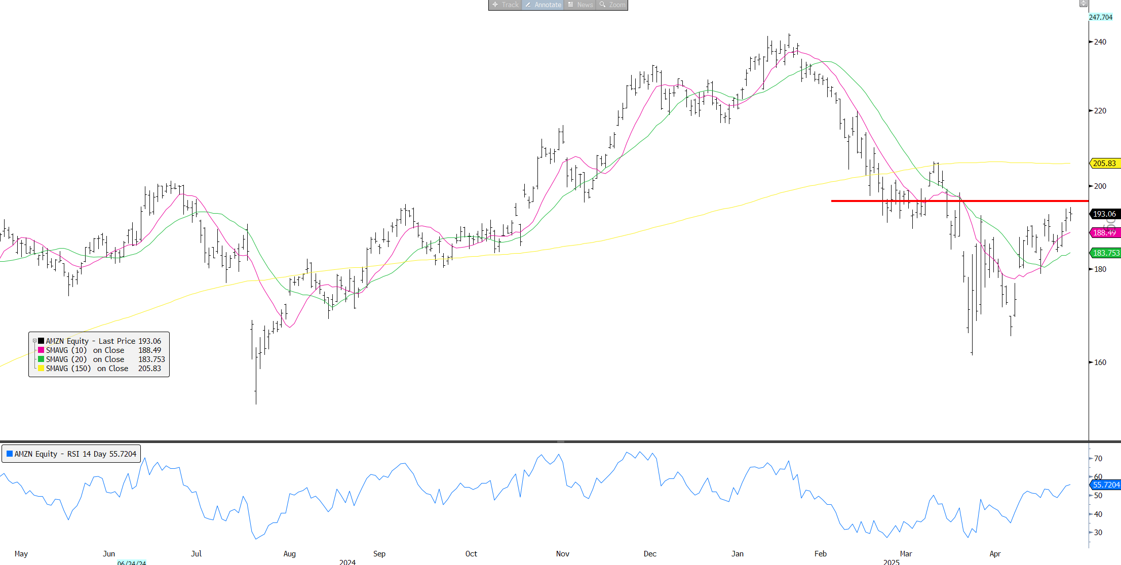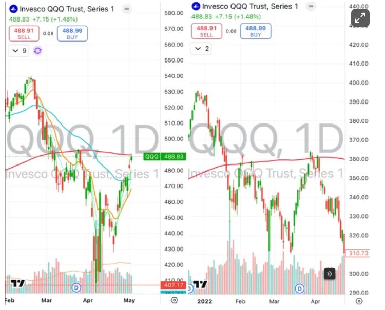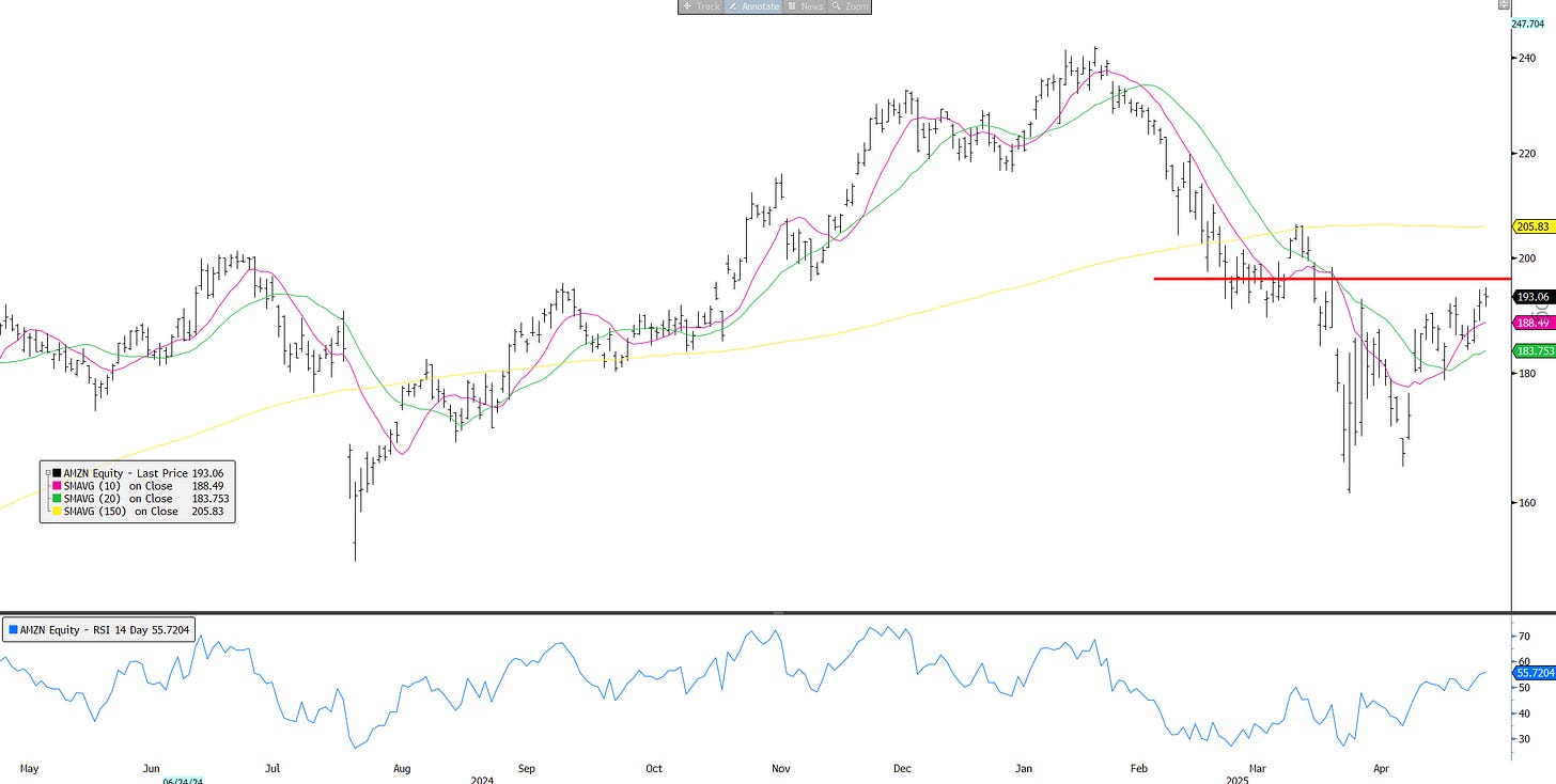 Bears will say the view that the worst of the tariff-related economic damage is behind us is premature as the true impact will now begin to filter through the data while pointing to companies like AAPL and AMZN where brunt of tariff hit will only begin to be felt after the June Q. Bears will say while tariff rates will go lower, they are poised to stay well above where they stood back in January, particularly China’s. If Trump is saying no lower than 80%, it likely means we probably end up somewhere around 40-60%. The impact of supply chain disruptions and increasing prices will begin to filter through the econ data over the next few months. The index still trades at 20x+ EPS of $265 , which likely has 2H downside risk and bears will argue than in times of uncertainty, the index should at best trade in high teens. The snap back has been a sentiment/positioning rally off extremely oversold levels.