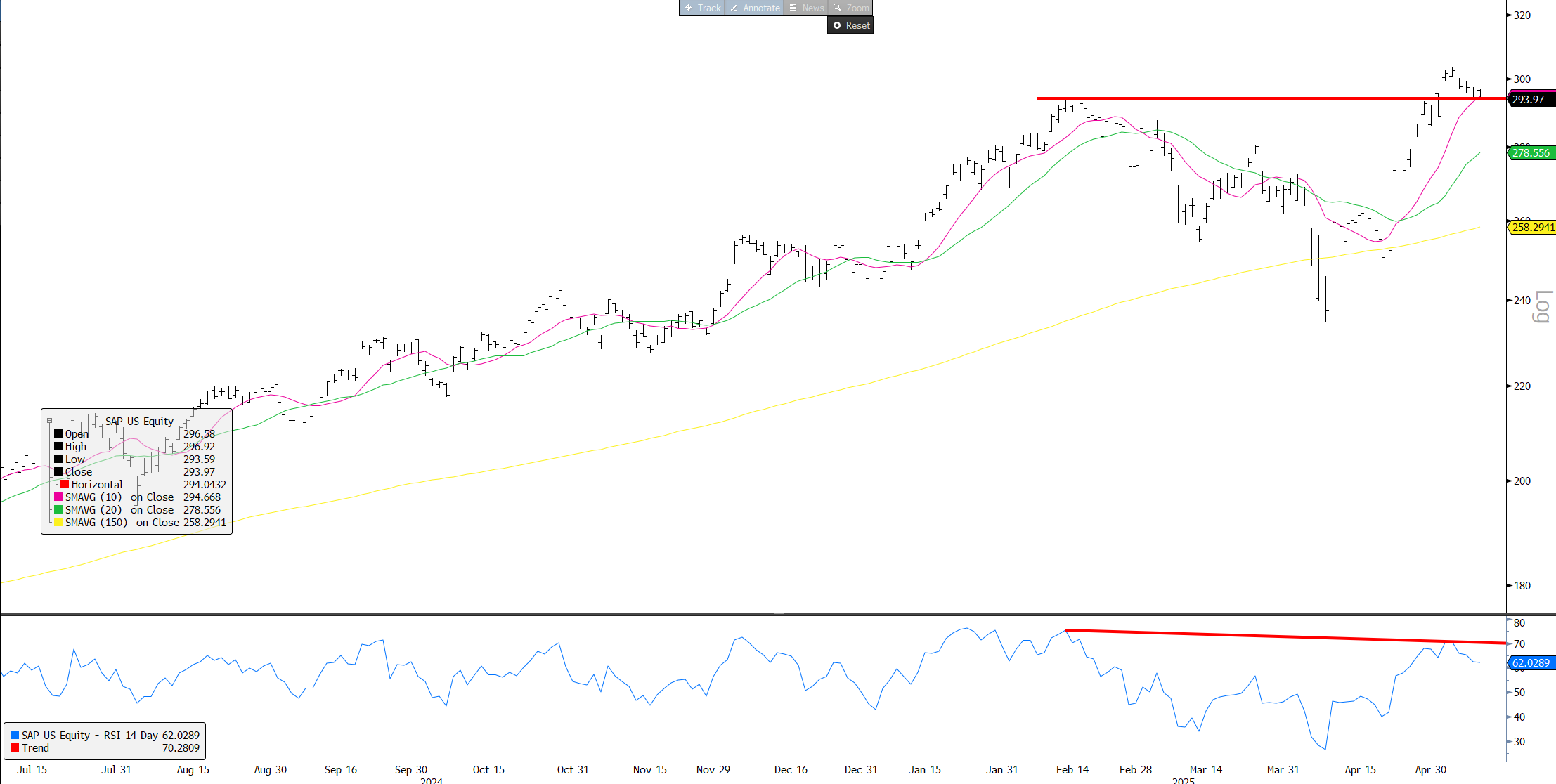 SAP: Even European darling SAP getting close to breaking below previous highs