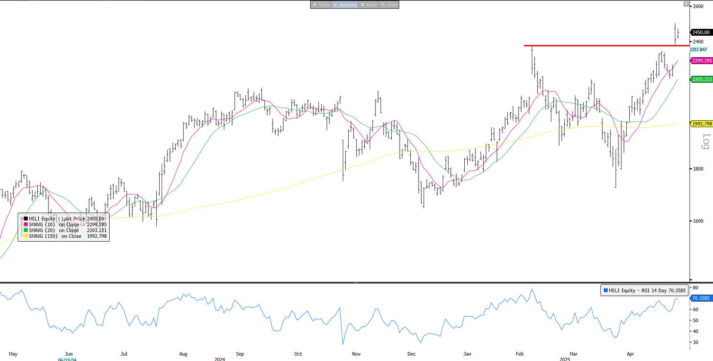 MELI: The one exception - no U.S. exposure. Making new highs