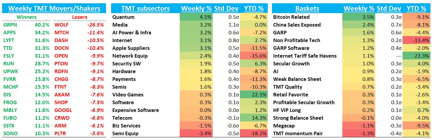 First off, heavy tariff exposed names (e-comm + ads) are all still below Liberation Day: