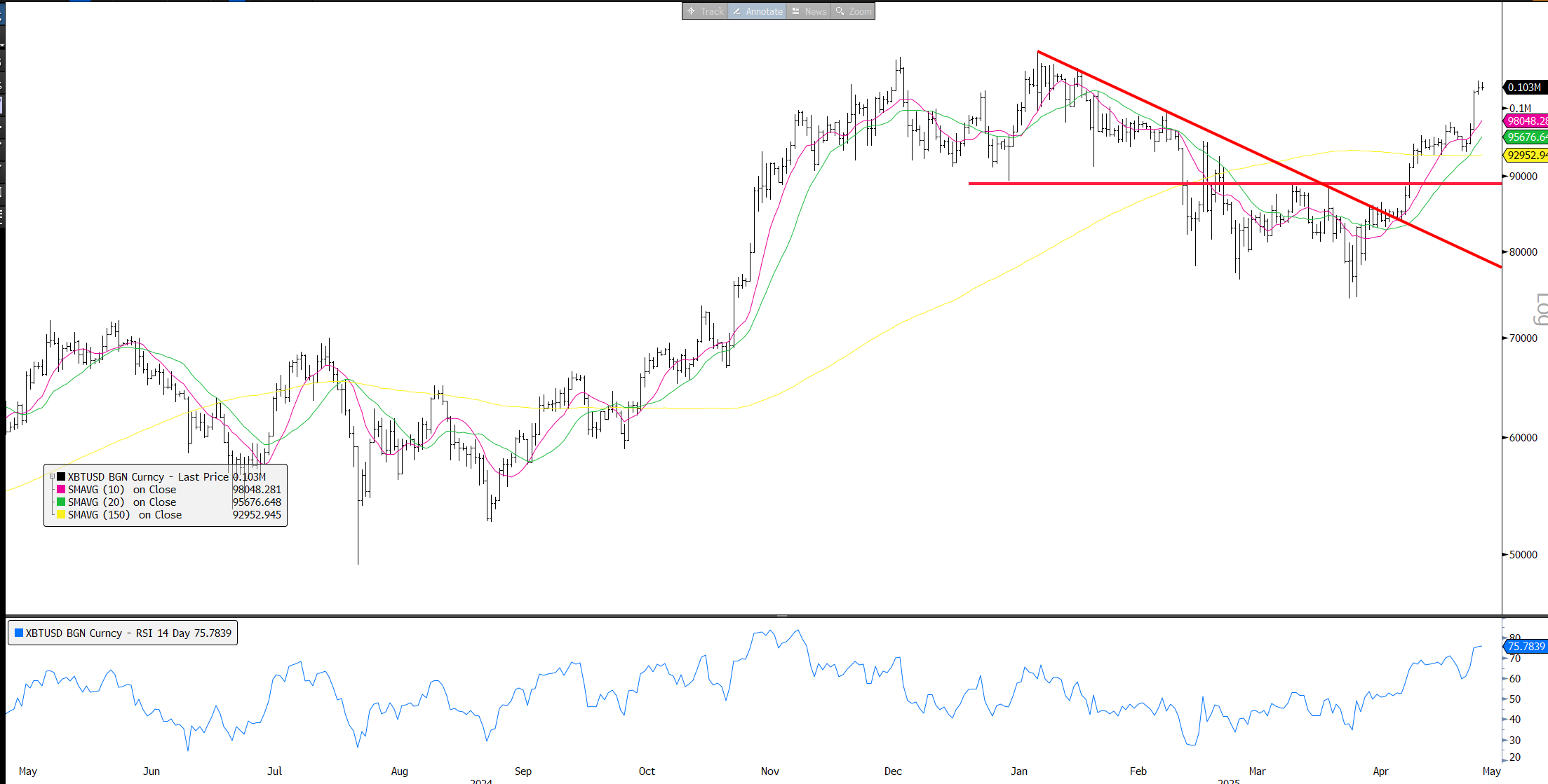 We are watching this closely as its tracking very closely. It points to a big red candle either Monday or Tuesday.