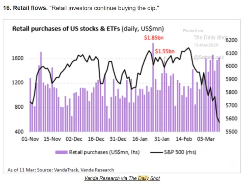 If the market can’t go down on a horrendous UMich on Friday, what kind of economic data is going to take it down? (yes, I know the caveats around UMich data becoming more political). We got a bit of a black hole in terms of big econ data until PCE on March 28th then Tariffs 4/2 big date.