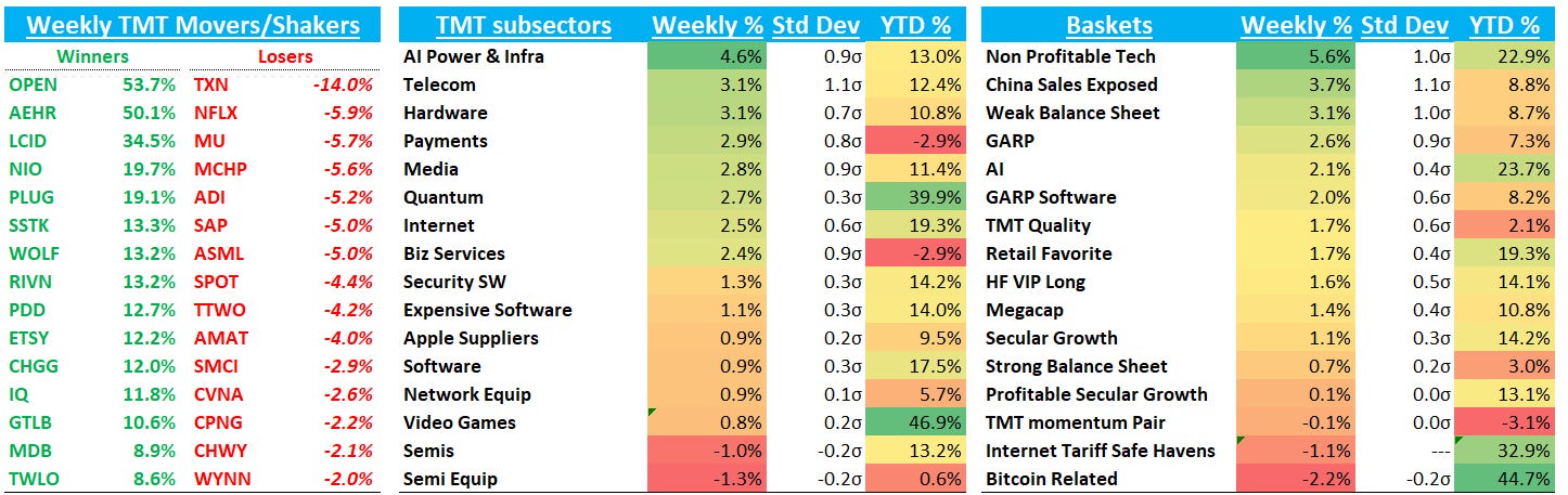 The macro set up remains supportive in our view: Earnings + growth strong, inflation is benign and subdued (for now), investors like the clarity on tariffs and taxes vs. uncertainty over last several months (an EU/US trade deal of 15% tariffs was announced over the weekend), potential of easier monetary easing (Powell noise is bringing M2 monetary expansion forward), and an AI super-cycle that shows no signs of abating. Yields and Oil remain subdued while there are signs the housing market is getting better. More TACO over the weekend with China tariffs delayed another 90 days.