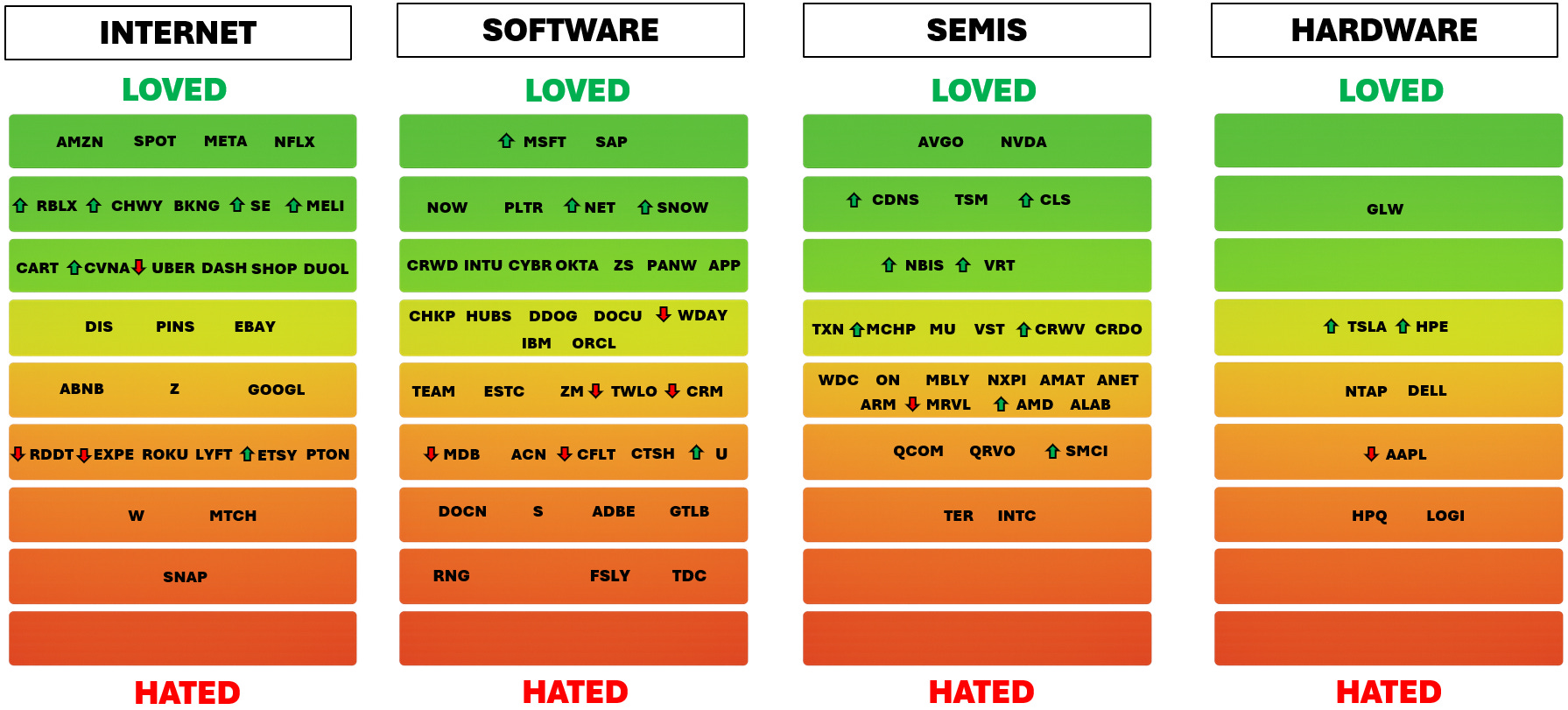 SPOT sits near highs and continues to be one of the cleanest stories in internet and is crowded and loved for that very reason (as well as it not being exposed to tariffs). The stock acts like teflon and I don’t hear many bears on this one any longer. Stock is viewed as extremely recession resistant - I would argue even more so than NFLX. ….Bull case here remains: 1) Pricing power still under-monetised – the core plan remains cheaper than rivals in most developed markets, giving management plenty of room to nudge ARPU — we got news a month ago they were announcing a price increase in Europe 2) Multi-format flywheel – podcasts have proven the model; audiobooks and eventual learning courses extend listening hours and ad inventory 3) Marketplace leverage – two-sided platform tilts negotiating power away from labels as indies and self-serve tools scale 4) Margin runway - new formats will continue to drive GM - Every extra point of GM drops almost entirely to the bottom line…Other catalysts: Q2/Q3 Staged rollout of Deluxe / Superfan tiers (higher-quality audio, exclusive drops), Second wave of regional price increases once new tiers establish value perception, and Audiobook expansion into high-income EU/Asia markets with à-la-carte upsell. Sounds pretty good to me.